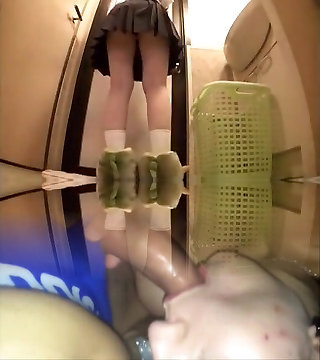 Gorgeous Japanese schoolgirls urinating in public bathroom