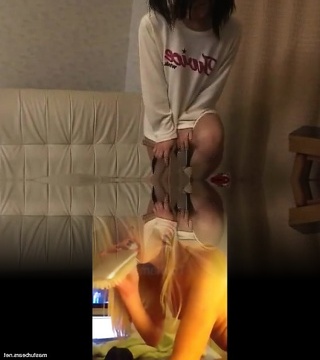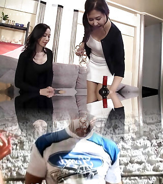 MOMMY'S GIRL - Milf Masturbates While Watching Stepdaughter Fuck Girlfriend LuLu Chu With A Cable-On