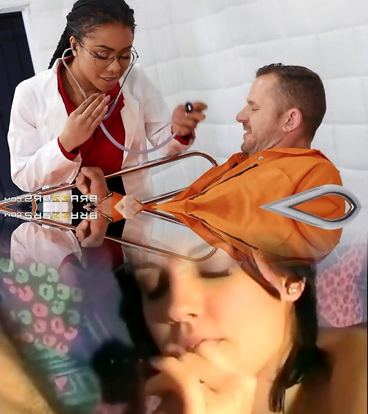 Naughty and steamy dark-hued physician demonstrates her baps before patient porks her mish