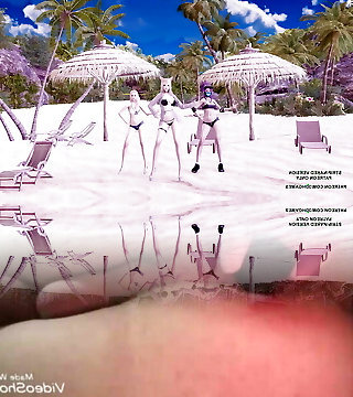 MMD Plucky Girls - Chi Mat Ba Ram Ahri Kaisa Seraphine KDA Cool Hot Dance League of legends Hentai