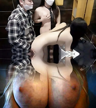 Chinese Damsel with big luxurious tits sucks a big dick very deep and fucks doggy style with cum